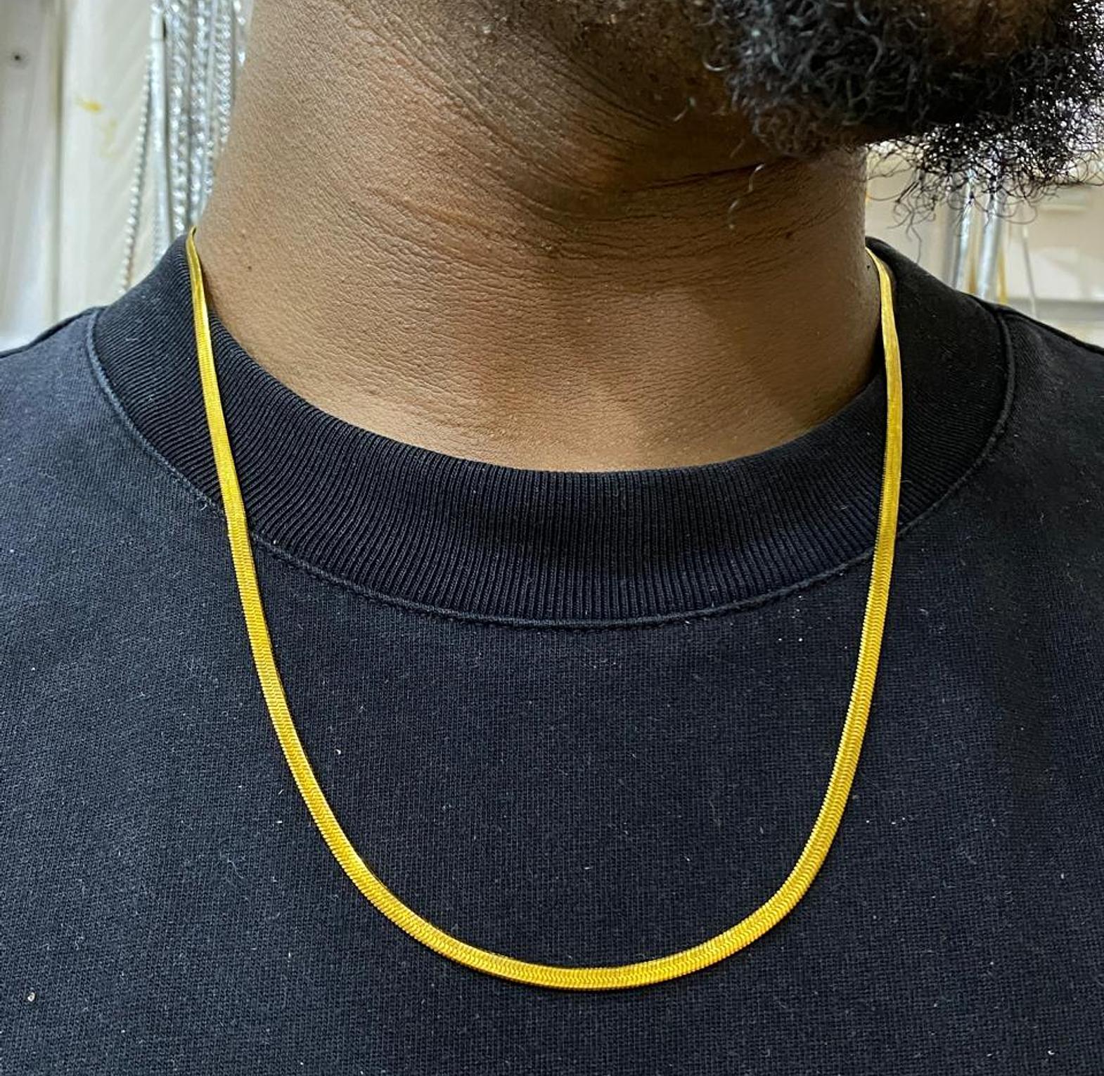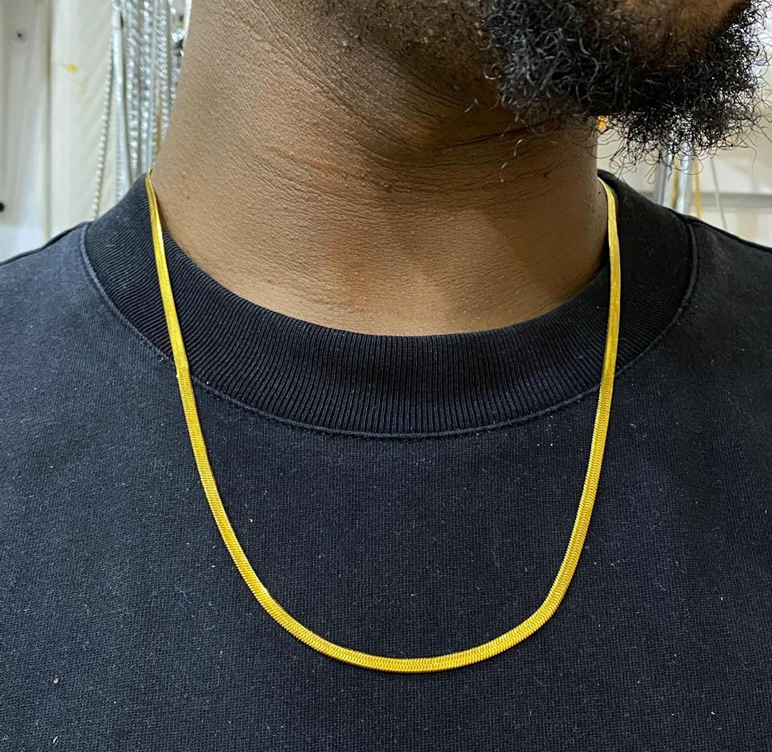 Experience fluid elegance with the Gilded Serpentine Chain, a sleek and smooth necklace that drapes beautifully. Its radiant golden finish offers a luxurious touch to any attire.