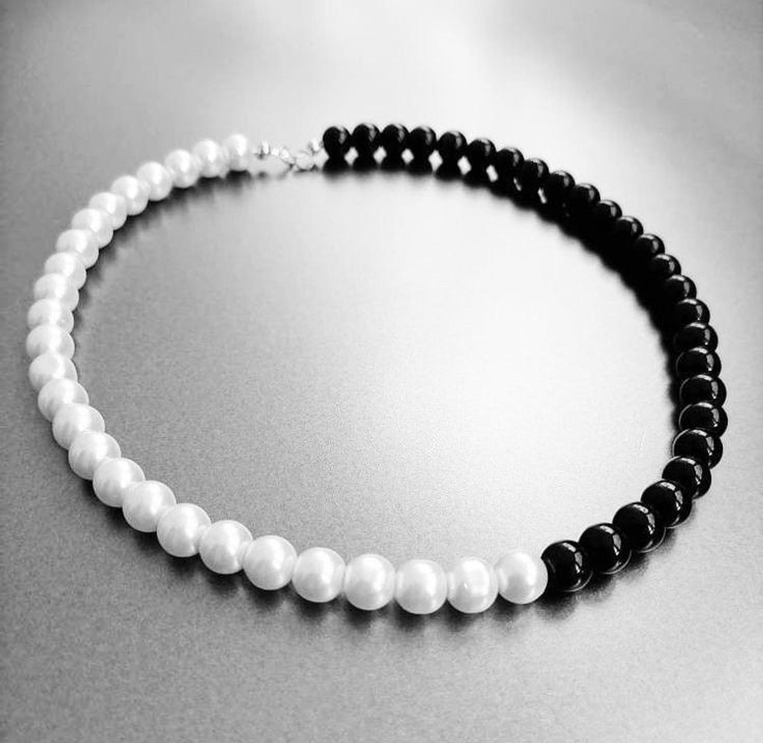 A timeless blend of black and white pearls, perfect for adding sophisticated contrast to any outfit.