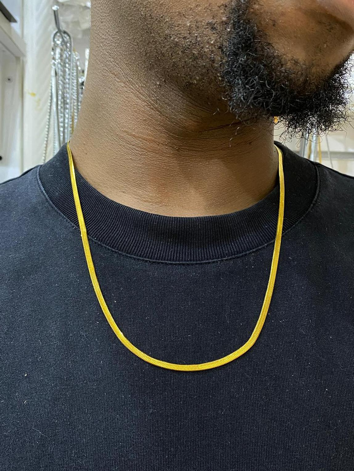 Experience fluid elegance with the Gilded Serpentine Chain, a sleek and smooth necklace that drapes beautifully. Its radiant golden finish offers a luxurious touch to any attire.