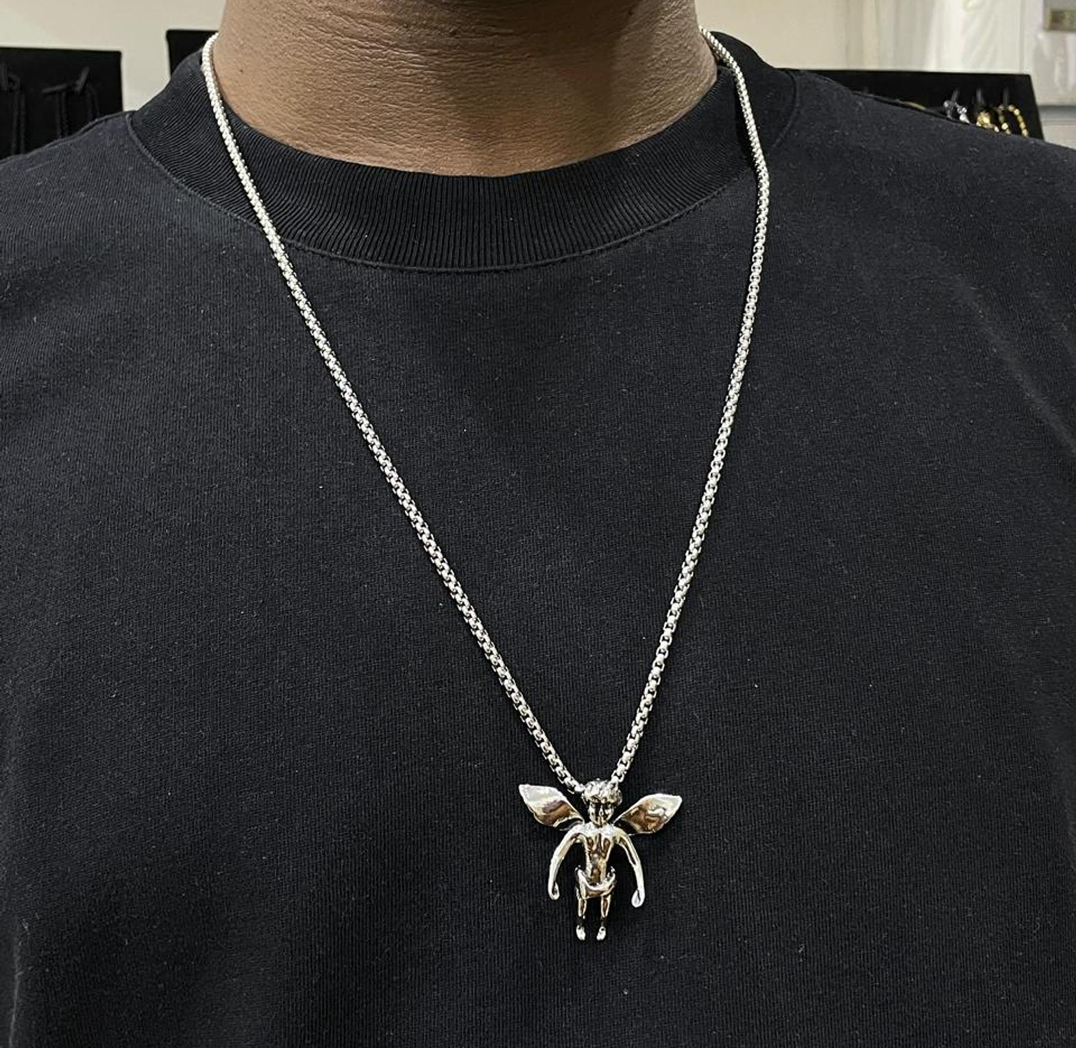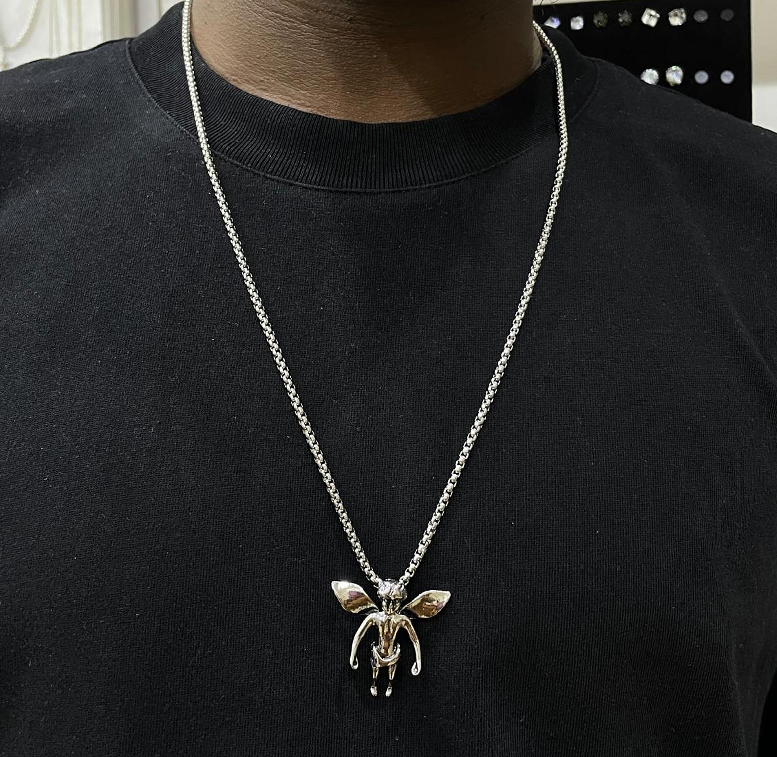 The Guardian Angel Stainless Steel Pendant Necklace represents divine protection and spiritual guidance through its beautifully detailed angel design that captures both strength and grace. This stunning pendant showcases meticulously crafted wings with textured detailing and a flowing silhouette that symbolizes heavenly protection and comfort. Made from premium stainless steel with a lustrous silver finish, this necklace offers exceptional durability, hypoallergenic properties, and complete tarnish resistance, ensuring it maintains its brilliant shine through years of wear. The pendant hangs elegantly from a classic stainless steel chain that complements the overall design while providing secure and comfortable wear. Whether worn as a personal reminder of spiritual protection, given as a meaningful gift for religious occasions, or chosen to honor the memory of loved ones, this angel necklace serves as a powerful symbol of faith and divine presence. The versatile design transitions seamlessly from casual daily wear to special occasions, making it an ideal accessory for anyone seeking to carry spiritual significance close to their heart. The non-tarnish coating ensures minimal maintenance while preserving the piece's mirror-like finish.